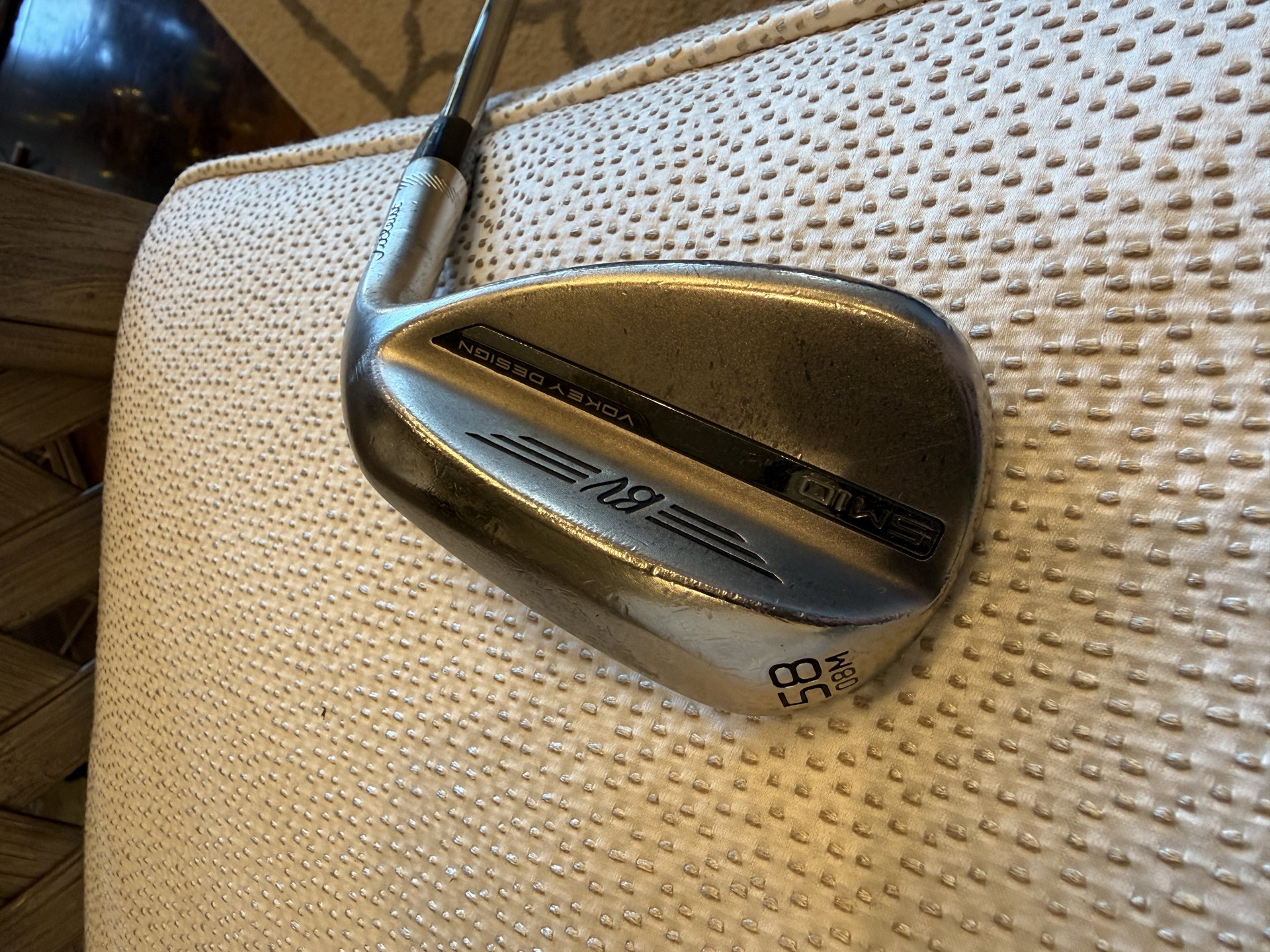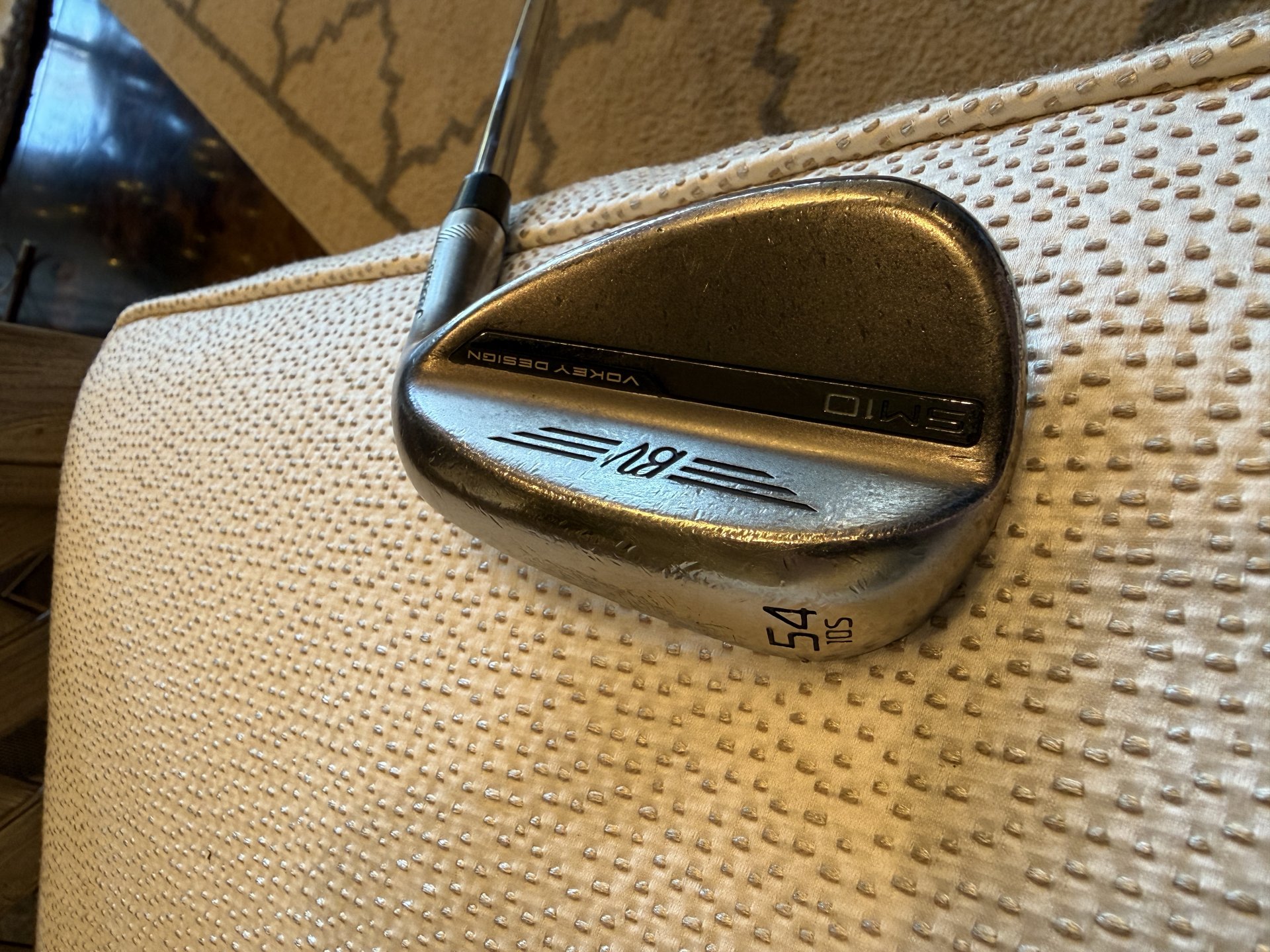 Set of 3 Titliest Vokey SM10 wedges in Nickel finish. 50, 54, 58 degree. All shafts are S400 stiff shafts. Bounces/Grinds are as follows. 50 - 08F, 54 - 10S, 58 - 08M. 210 for the set or 80 a peice. Used for 1 year.